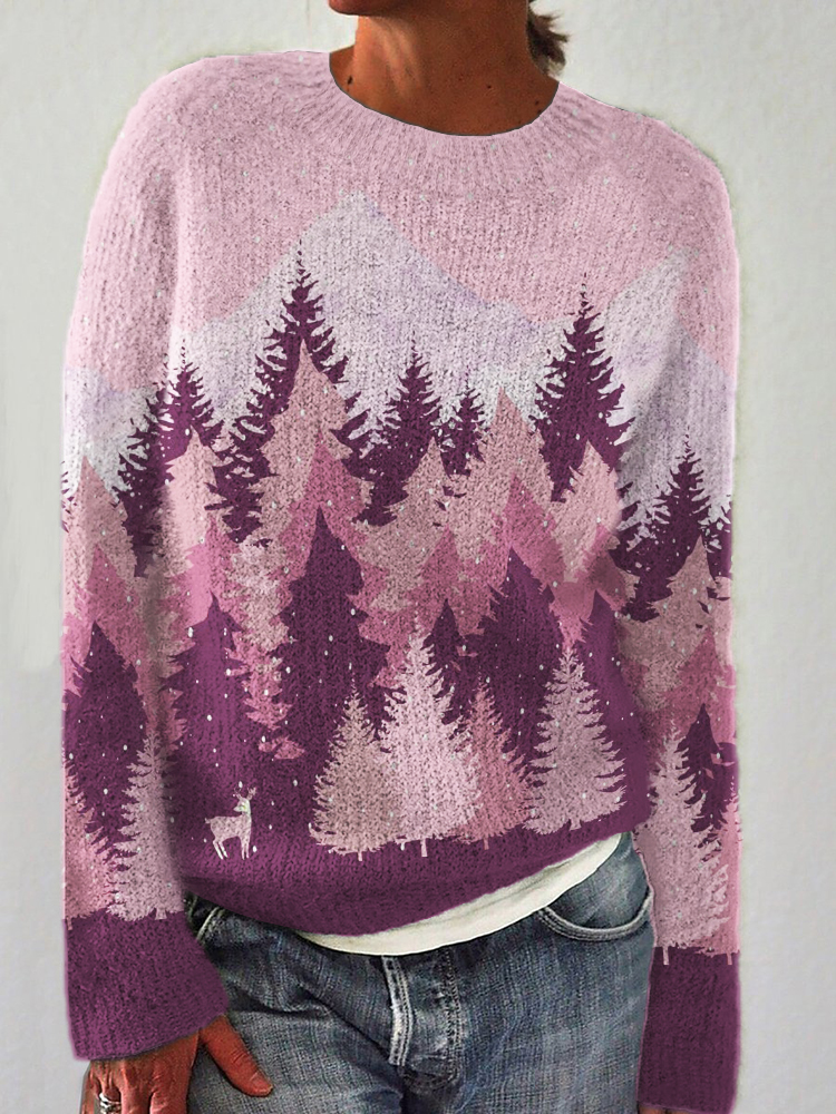 Christmas Reindeer Snowy Forest Colorblock Cozy Sweater