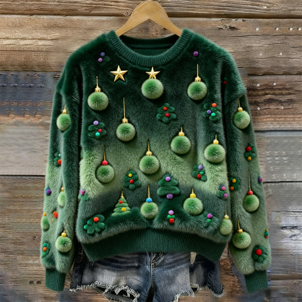 Christmas Tree Decorative Art Women's Plush Sweater