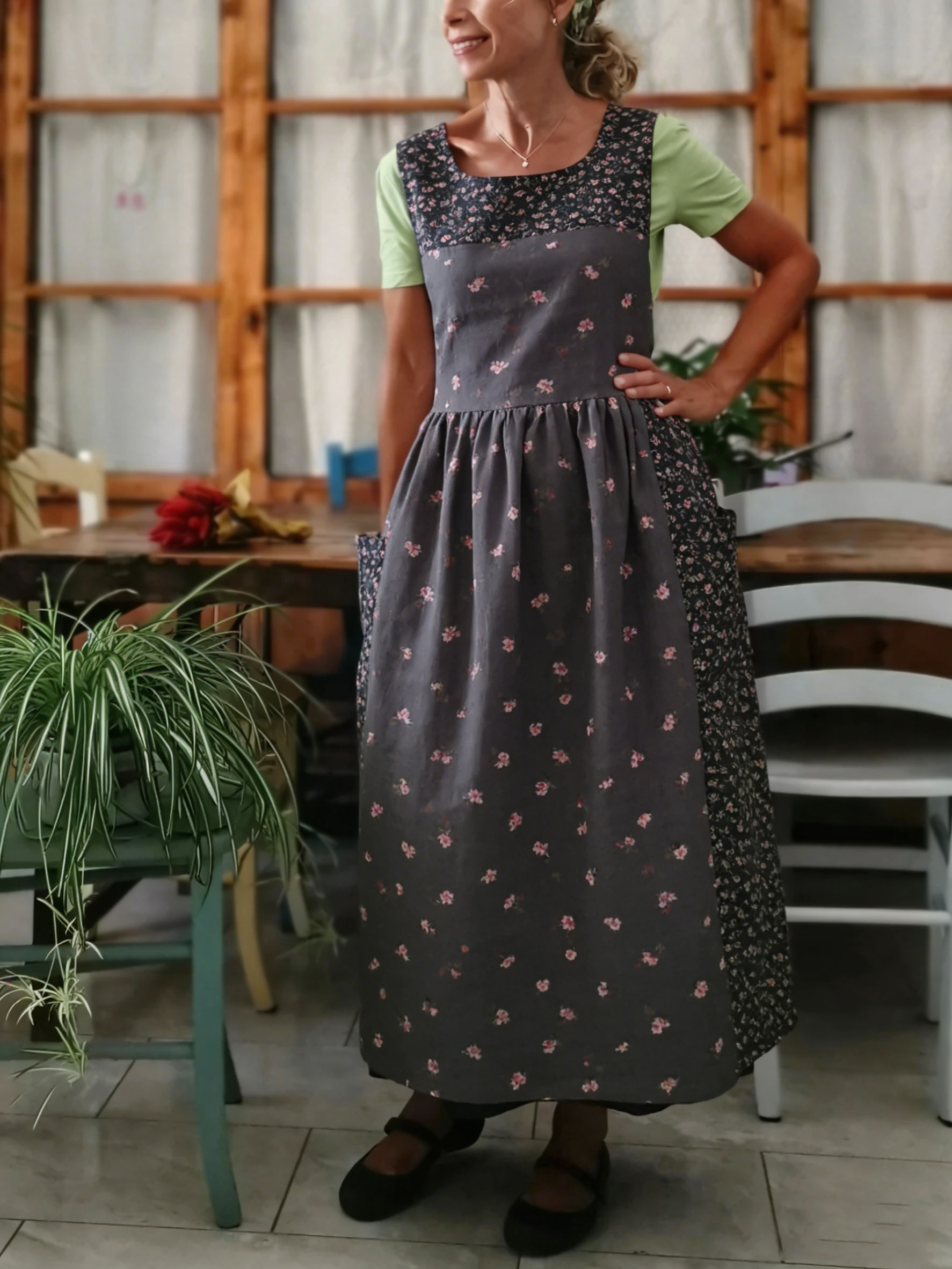Color Block Print Apron-1219
