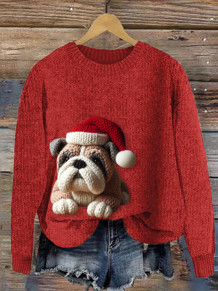 Cute Bulldog Crochet Art Cozy Knit Sweater