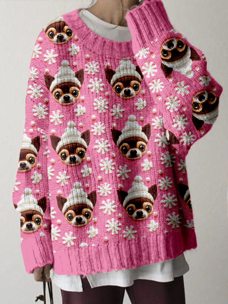 Cute Christmas Chihuahua Embroidered Cozy Sweater