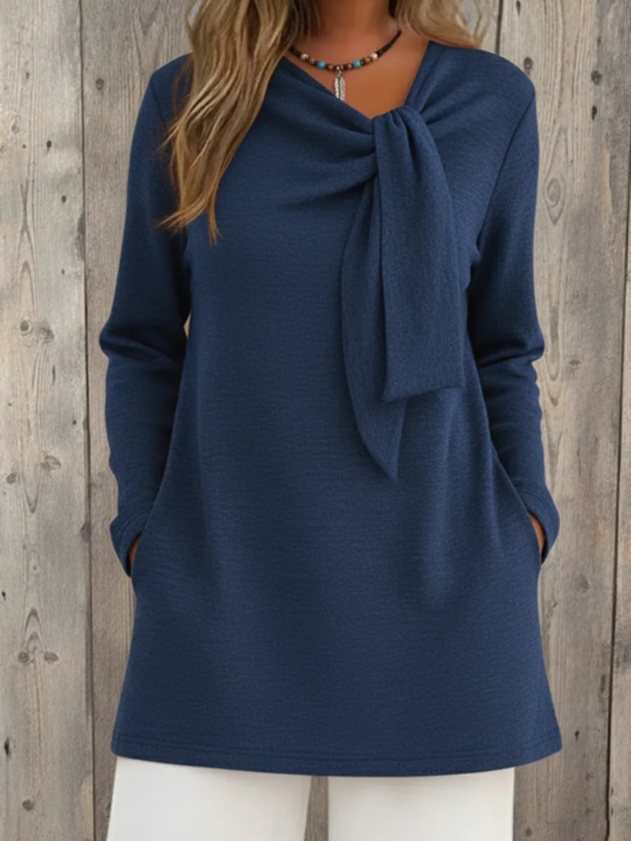 Elegant Tie-ribbon A-line Knit Sweater Top