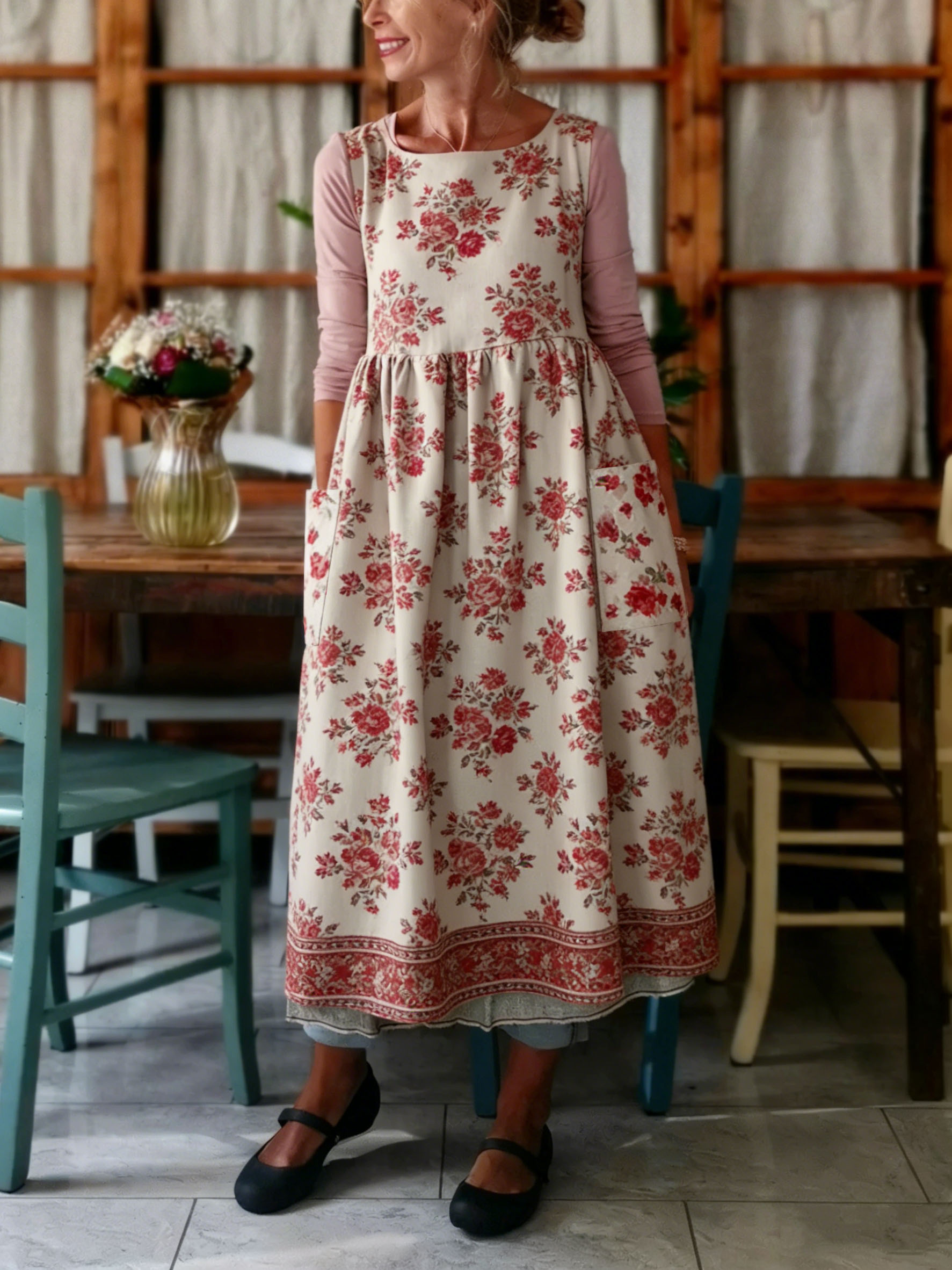 Floral Print Apron-1219