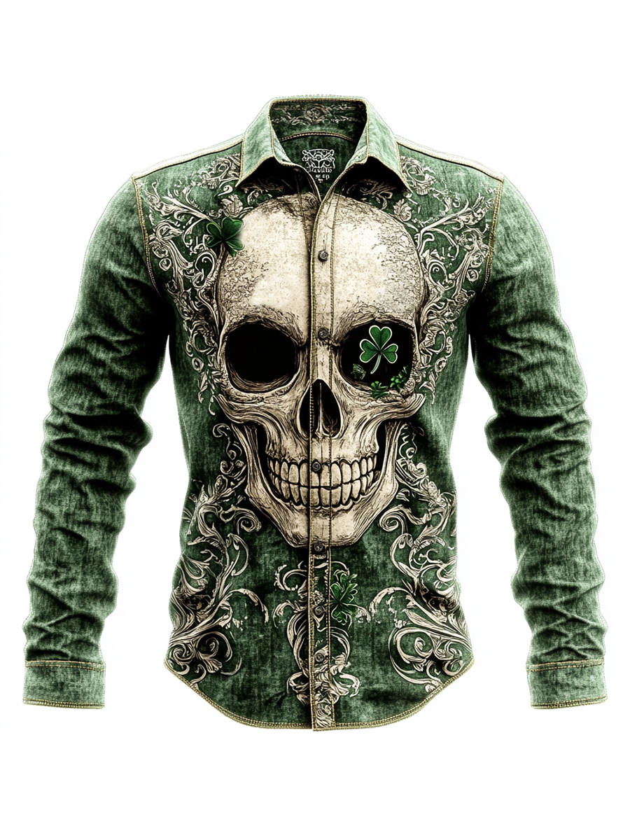 Men's St. Patrick's Shamrock Skull Art Print Long Sleeve Shirt