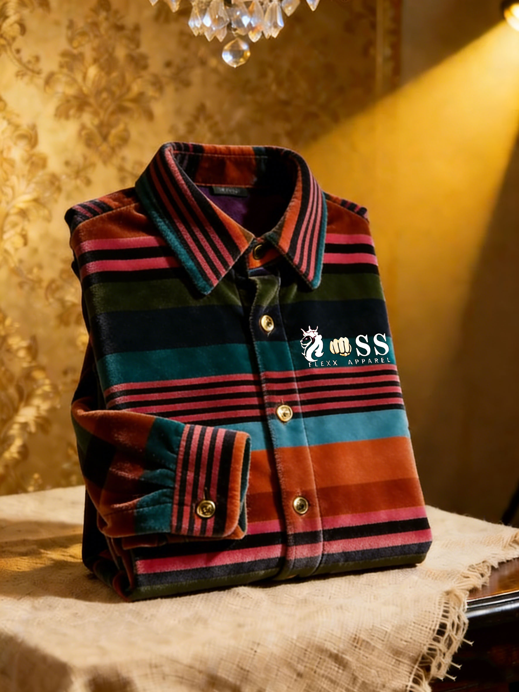 Men's Velvet Business Logo Print Long Sleeve Polo Shirt-0109
