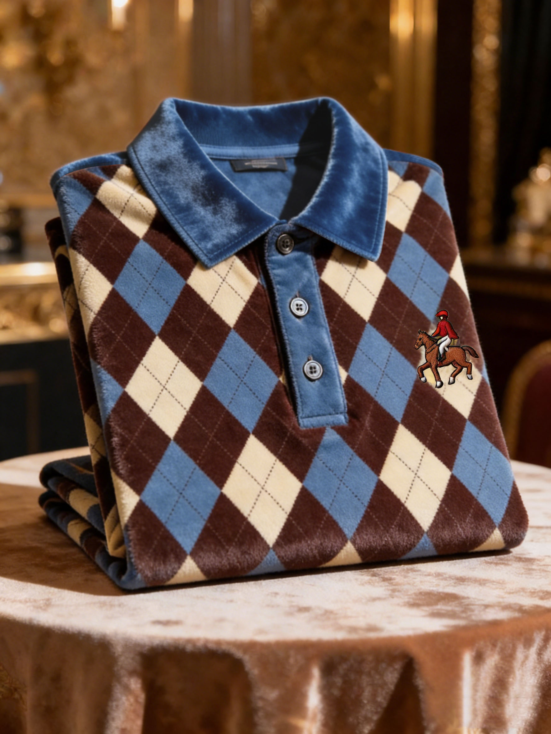 Men's Velvet Business Logo Print Long Sleeve Polo Shirt-0109