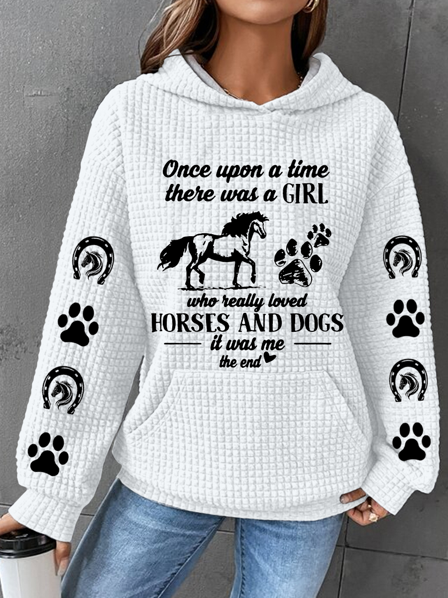 Once Upon A Time There Were A Girl Horses And Dogs Print Waffle Sweatshirt