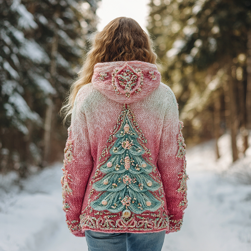 Pearl Christmas Tree Ombre Hooded Sweater