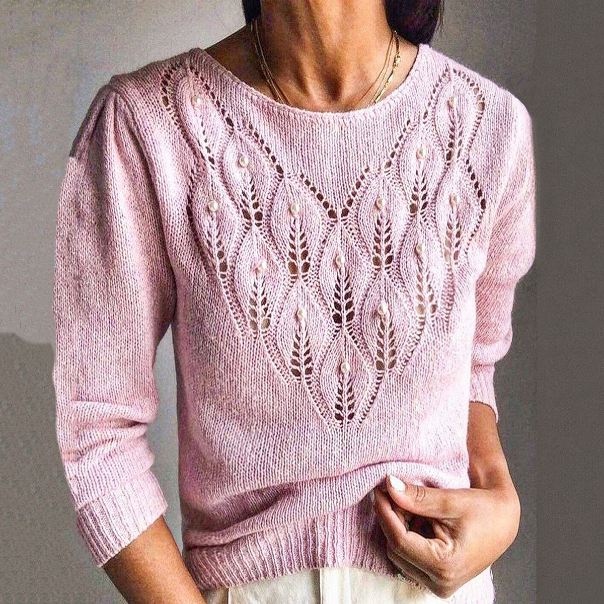 Pink Awareness Christmas Jacquard Pearls Embroidery Cozy Knit Sweater