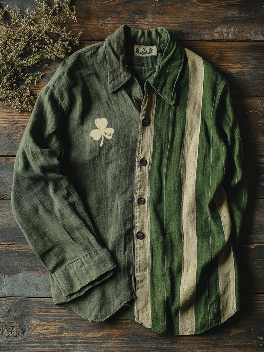 St. Patrick's Day Green Striped Clover Art Print Shirt