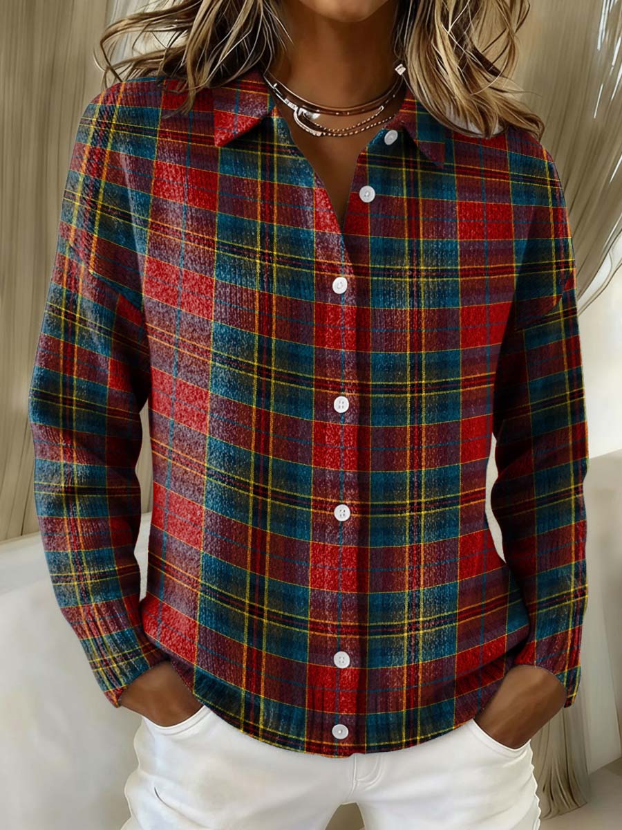 Vintage Classic Red Plaid Decorative Pattern Cowl Neck Sweater