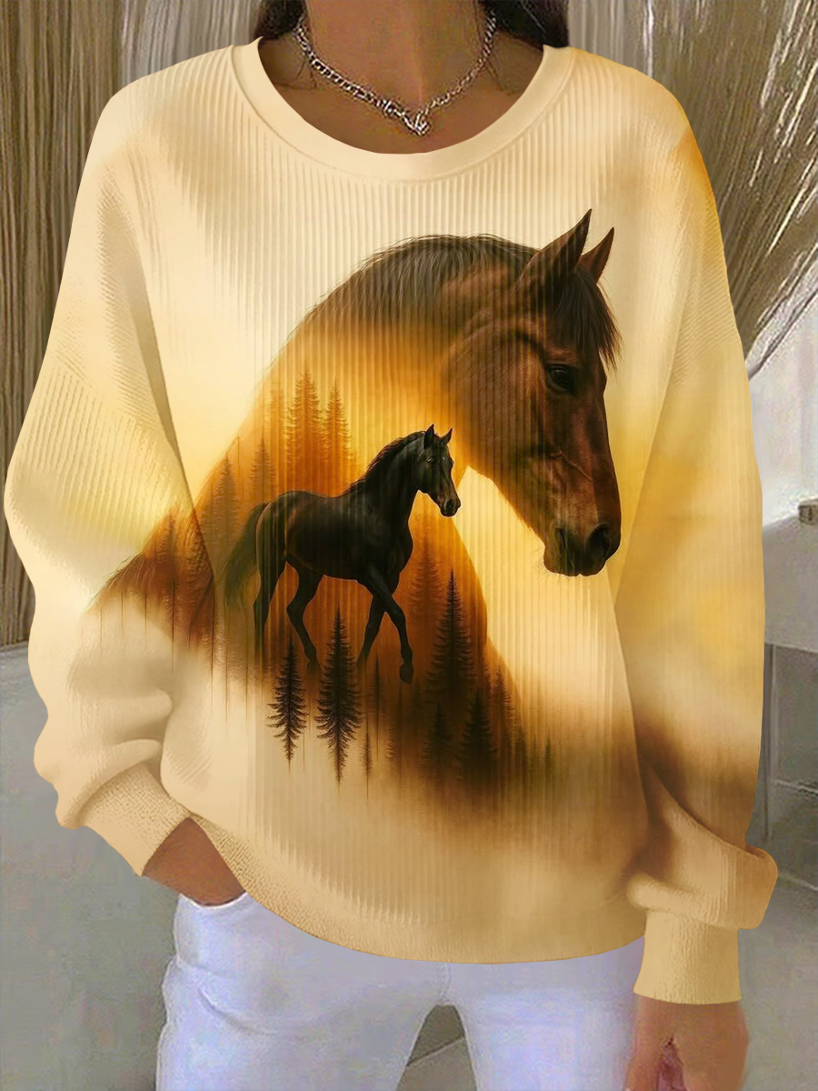Vintage Horse Art Print Crew Neck Sweatshirt