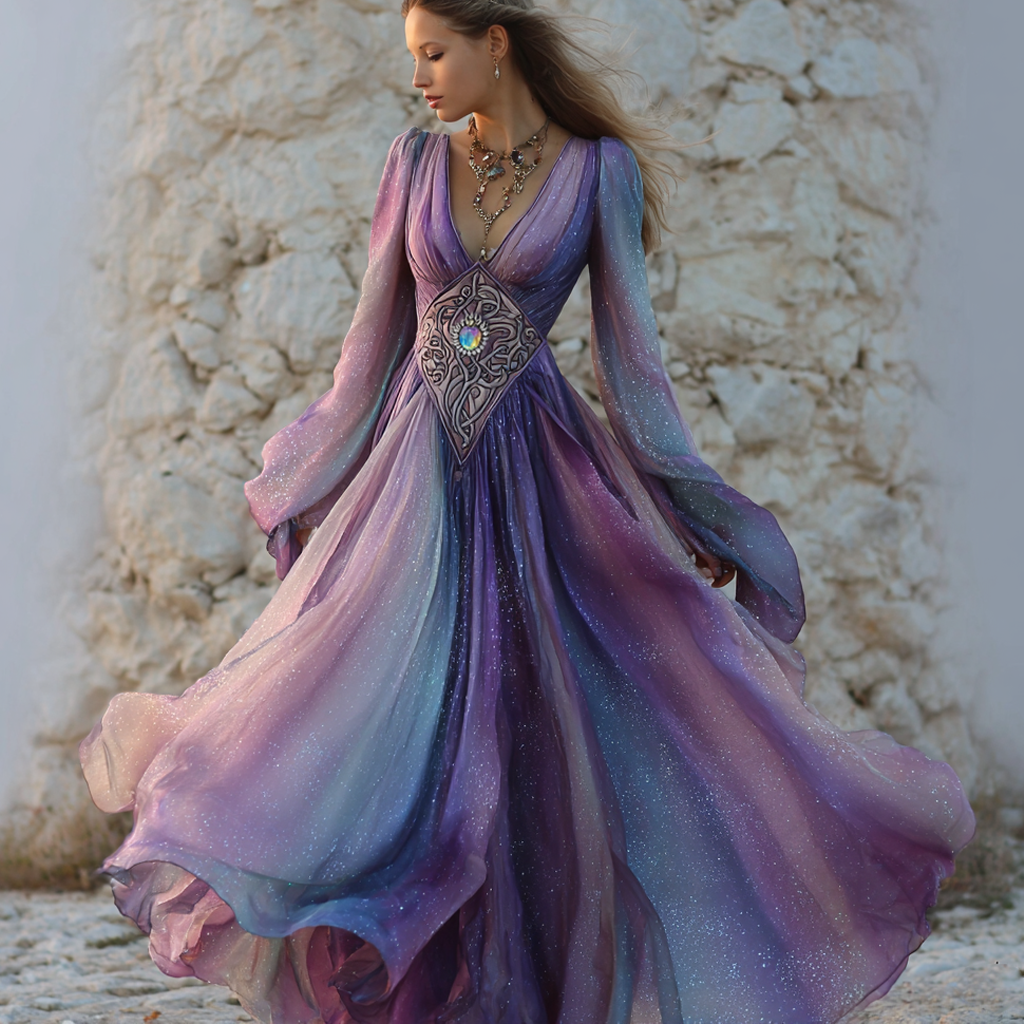 Vintage Opal Celtic Glitter Gradient Flowy Maxi Dress