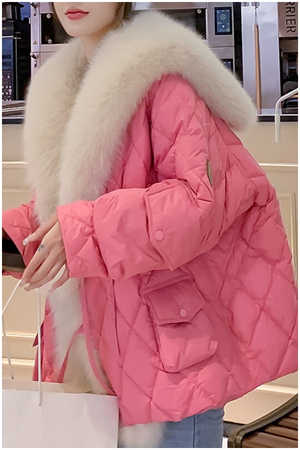 Women Green Fur Collar Oversized Duck Down Puffers Jackets Winter