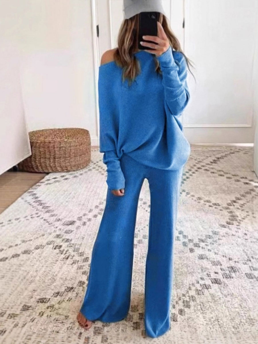 Women's Casual Solid Color Batwing Long-sleeve Two-piece Set