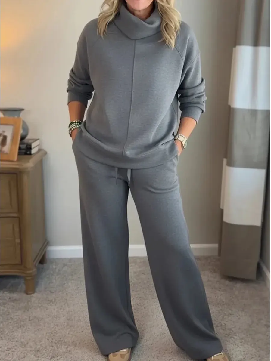 Women's Casual Turtleneck Cotton Sweatshirt And Pants Two-piece Set