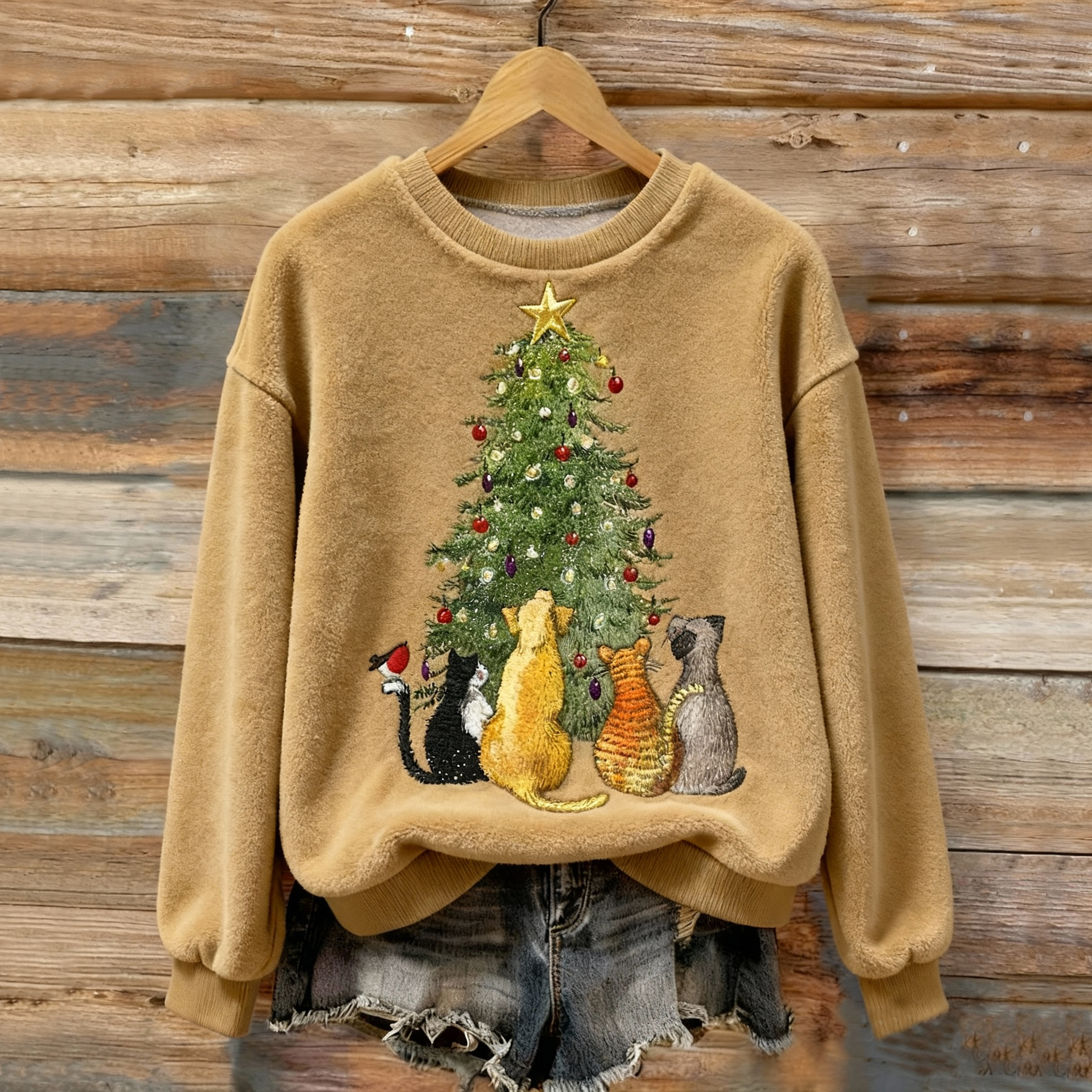 Women's Christmas Cats And Dogs Embroidery Art Comfort Plush Sweatshirt