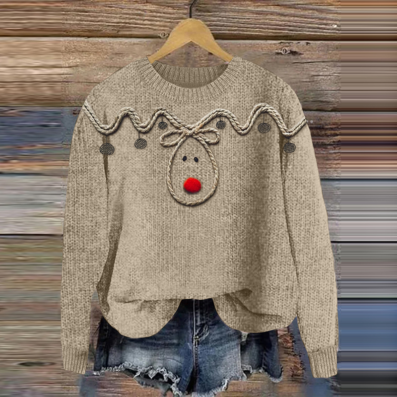 Women's Christmas Elk Deer Embroidery Cozy Crew Neck Sweater