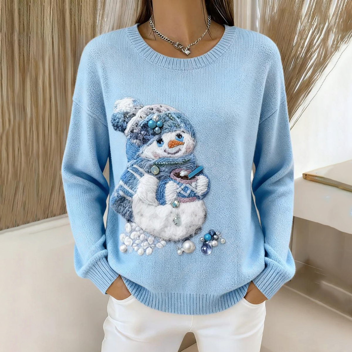 Women's Christmas Snowman Art Cozy Knit Pullover Sweater