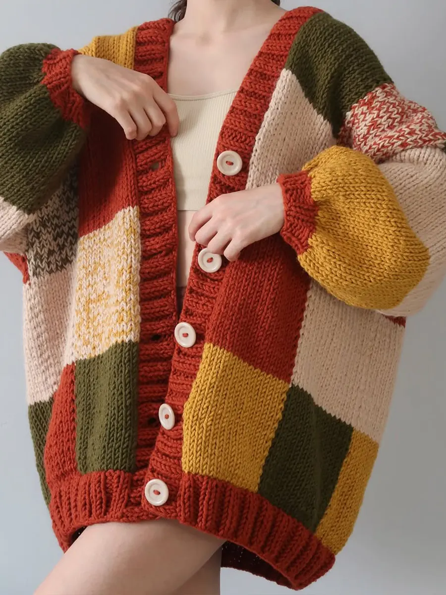 Women's Cozy Loose Plaid Cardigan