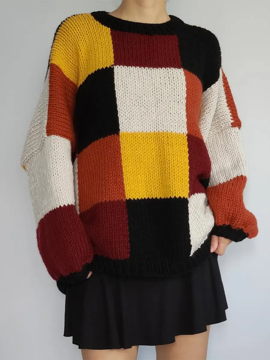 Women's Cozy Loose Plaid Pullover Sweater