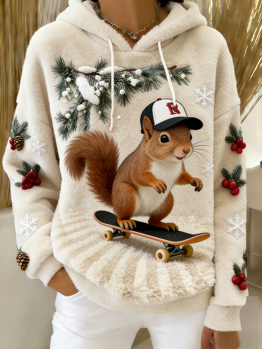 Women's Retro Animal Art Print Comfortable Flannel Hooded Sweatshirt