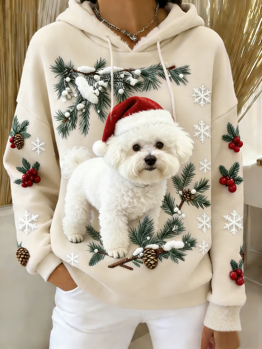 Women's Retro Animal Art Print Comfortable Flannel Hooded Sweatshirt