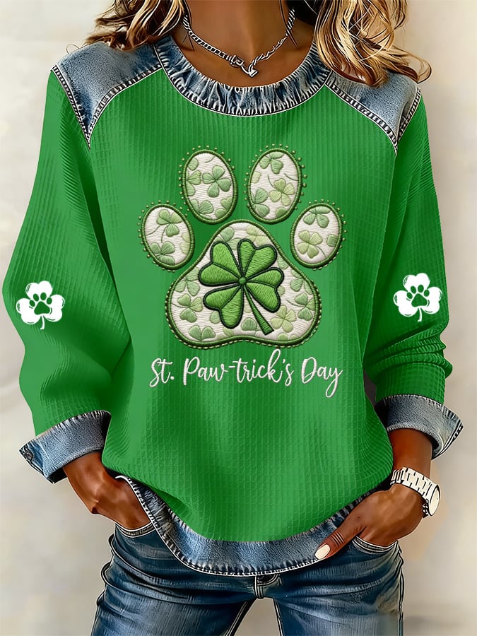 Women's St. Patrick's Day Print Waffle Sweatshirt