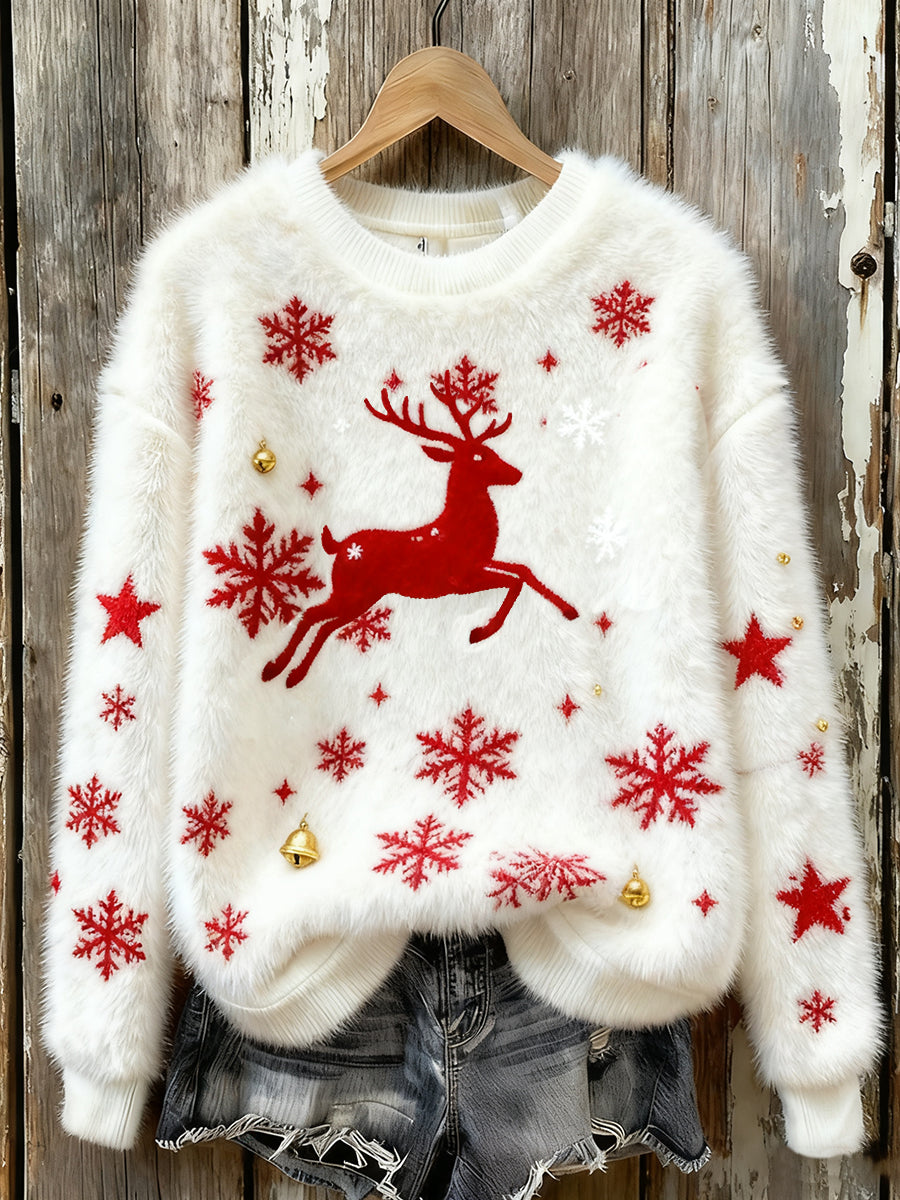 Women's Vintage Christmas Art Print Cozy Flannel Sweatshirt