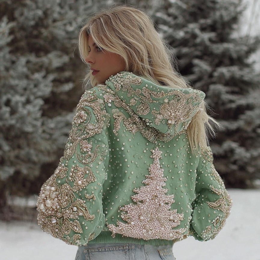 Women's Vintage Christmas Tree Graphic Casual Hoodie