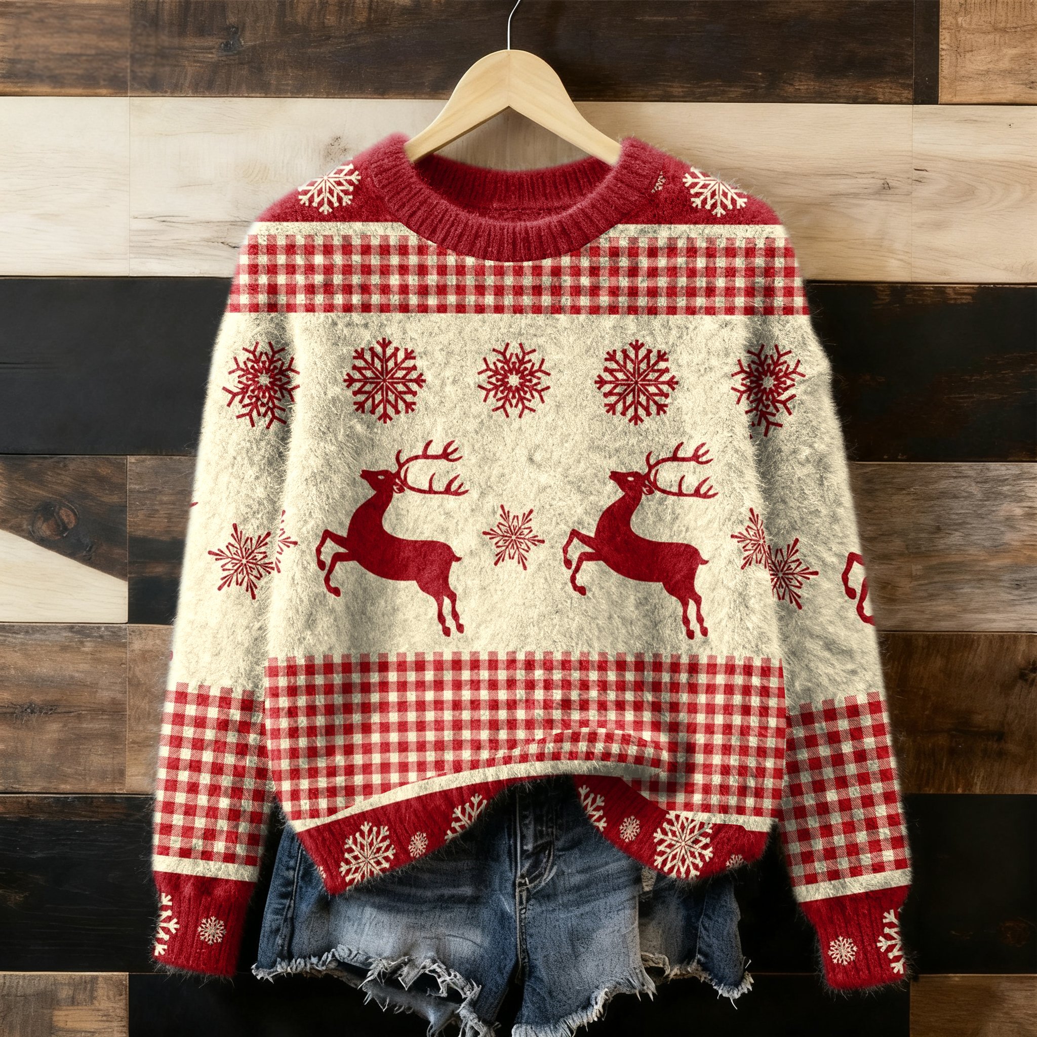 Women's Winter Christmas Elk Art Flannel Sweatshirt
